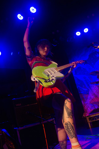 Finally, the moment arrived when Covet, the headlining math rock band, graced the stage. The sheer excitement and palpable energy from the fans were electrifying. The venue was packed to the brim, creating an atmosphere that had everyone sweating. As the lead guitarist, Yvette Young, began playing, it was impossible not to be captivated by her glitzed-out guitars, shimmering under the lights. With remarkable skill, she effortlessly showcased her musical abilities, leaving the entire crowd in awe of her technical prowess. As the set neared its conclusion, Yvette shared a heartfelt sentiment, expressing that when she writes music, it feels like falling in love. The pure passion emanating from her and the entire band was unmistakable, serving as a testament to their unwavering dedication to their craft.